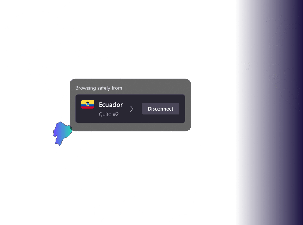 Connect to an Ecuadorian server to surf the internet with ease, privacy, and security.